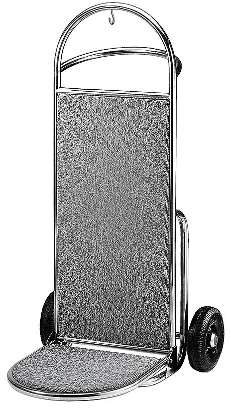 Gepäckkarre, Gestell aus Edelstahl, schwarze 200 mm Luftreifen, grauer Textilbelag